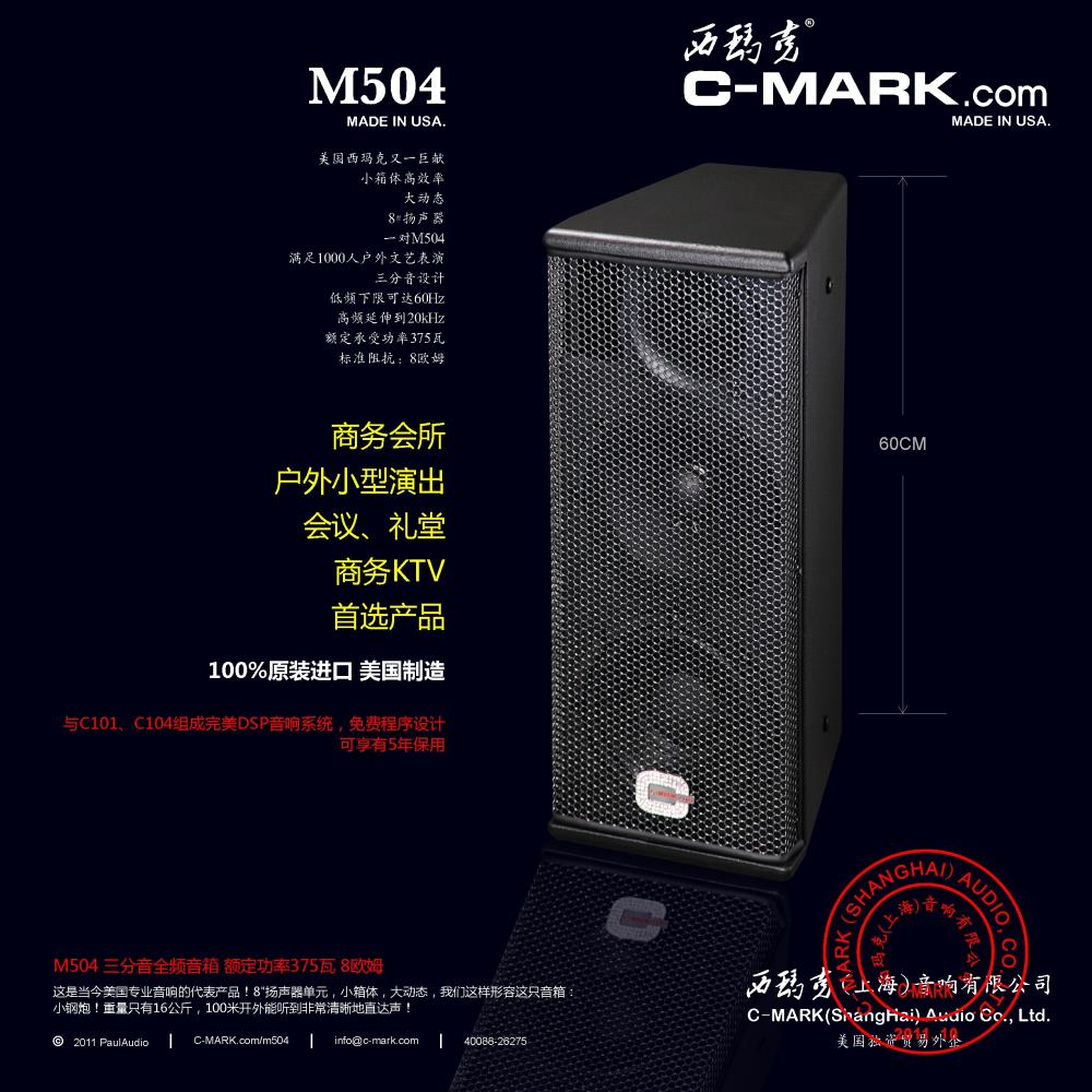 M504:8"三分频,375W RMS,8欧姆,多功能厅、户外小型文艺表演首选产品,94'春晚中央电视台使用(升级版) 100%原装进口 美国制造